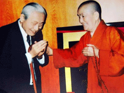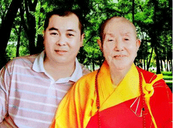 闫禹林老师与释印久老法师合影留念。释印久老法师是目前国内唯一资格最老的佛教传戒法师。老法师认为在家修行人闫禹林老师才是真正的佛菩萨乘愿再来之人。