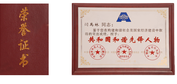 在大会开幕式上,闫禹林老师被颁发“共和国和谐先锋人物”钛金奖牌一块;颁发“共和国和谐先锋人物”精美荣誉证书一册;颁发“庆祝中华人民共和国成立58周年”的珍贵胸章一枚。并且闫禹林老师的先进事迹被载入《和谐中国——共和国先锋人物风采》大型精美会刊当中。 |