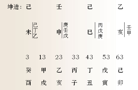 此命理八字原局、由于月干壬水正财引发,坐下巳火与月令申金有合化财局之势,所以此八字身中和偏弱、以印星为用神,比劫为喜神。