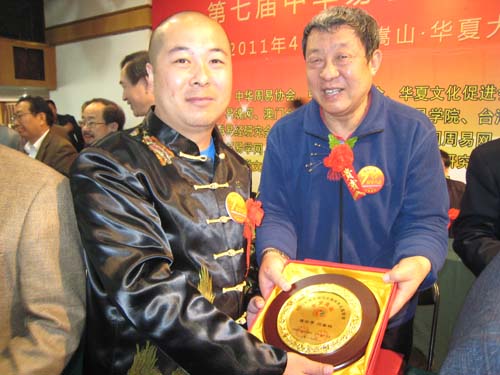 由华夏大易(北京)国际文化交流中心主办的“第七届中华易学文化大会”于2011年4月11日至15日在河南省嵩山市嵩山鹿鸣山庄隆重举行,此次大会的主题是“传承中华智慧文明、创新祖国易学文化”。在此次盛会上、华人第一风水名师:闫禹林老师荣获风水行业至高荣誉奖项“金罗盘奖”,由中华易学泰斗张延生教授亲自为闫禹林老师颁奖(这已经是张老爷子连续四次为闫禹林老师颁奖了)。
