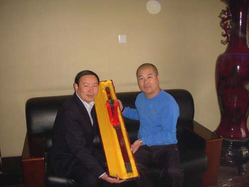 在大会期间、应登封市农行领导的邀请,闫禹林老师为其祖坟进行了重新选址。在当天很顺利的选择了两处大吉风水之地、一处选在郑州市郊区风景秀丽的九龙湾风景区(此处供奉着具有四千年悠久历史的白龙王庙),另一处选在登封水库;为了答谢闫禹林老师、农行领导老大哥连夜赶制了一把七星宝剑,并亲自请少林寺方丈:释永信大师为宝剑开光、馈赠给闫禹林老师留作纪念!在这里要跟广大易友重点说明的是:在赠送宝剑时,闫禹林老师与农行老大哥亲切合影时、在闫禹林老师头顶上出现了一个很大的白色能量团;此能量团为北斗九星星君当中最亮的一颗“北极星”,同时也是九星星君当中级别最高的一位星君:北极星君他老人家的法身亲自临坛、来护持着闫禹林老师(详情见照片为证)。